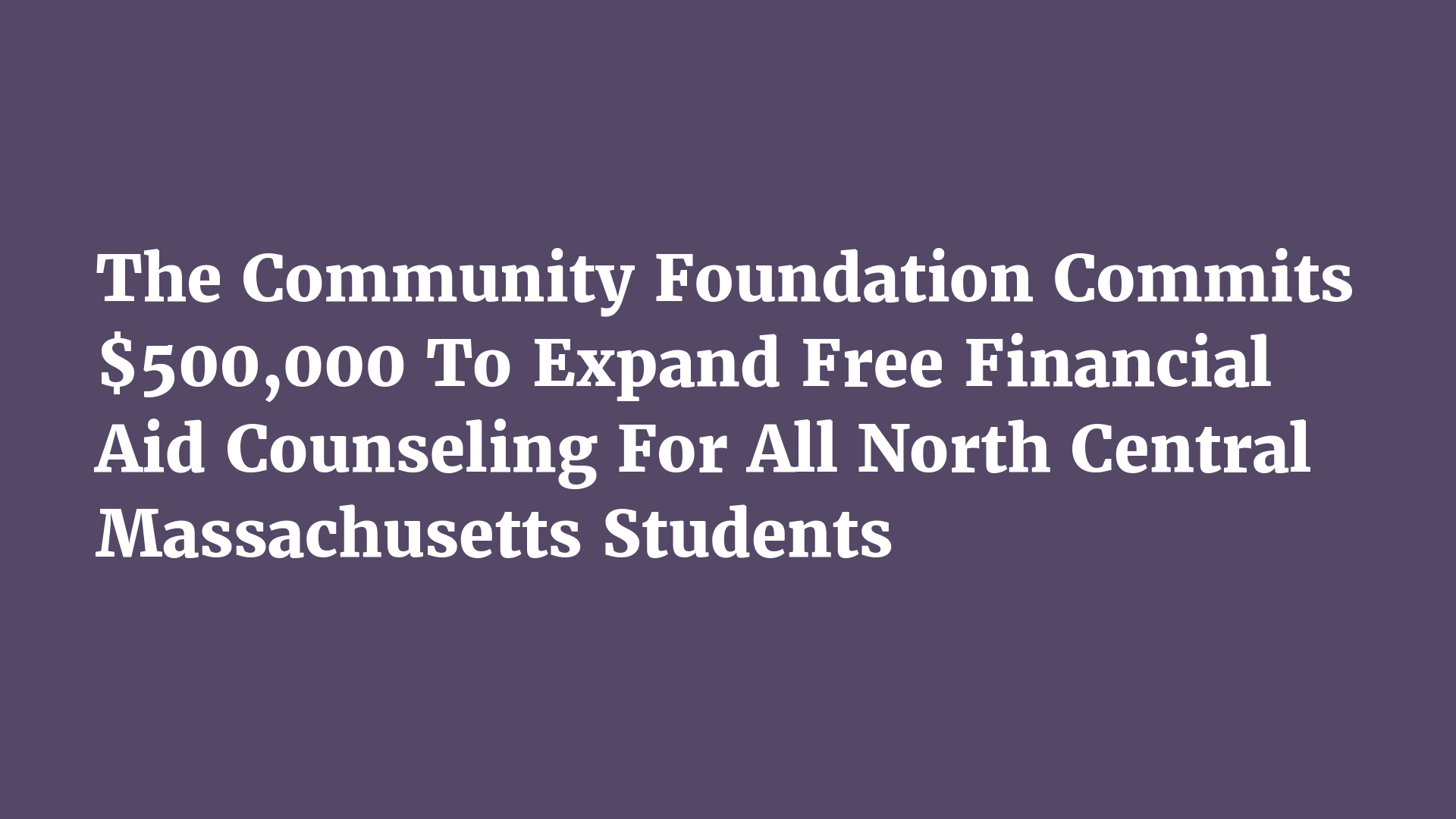 Community Foundation Commits $500,000 to Expand Free Financial Aid Advising For All North Central Massachusetts Students