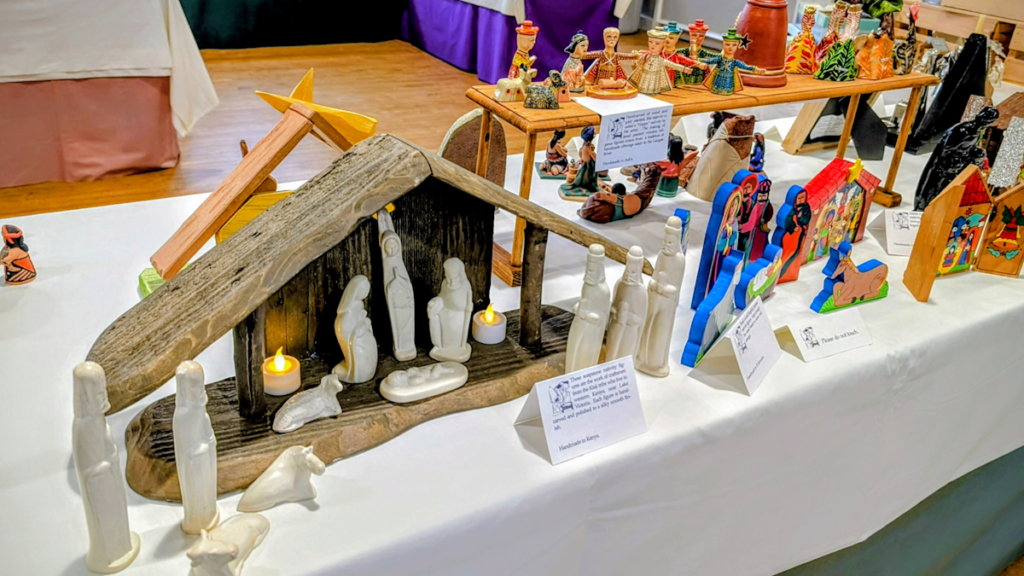 The parishioner is showing 453 of her own nativity sets – and five given to her on loan. If you visit the display, you will see nativity sets from 75 different countries and 35 states. There are nativity sets from Italy, Peru, Poland, Mexico and African countries, made out of an assortment of materials, from porcelain to tin to intricate wood carvings.