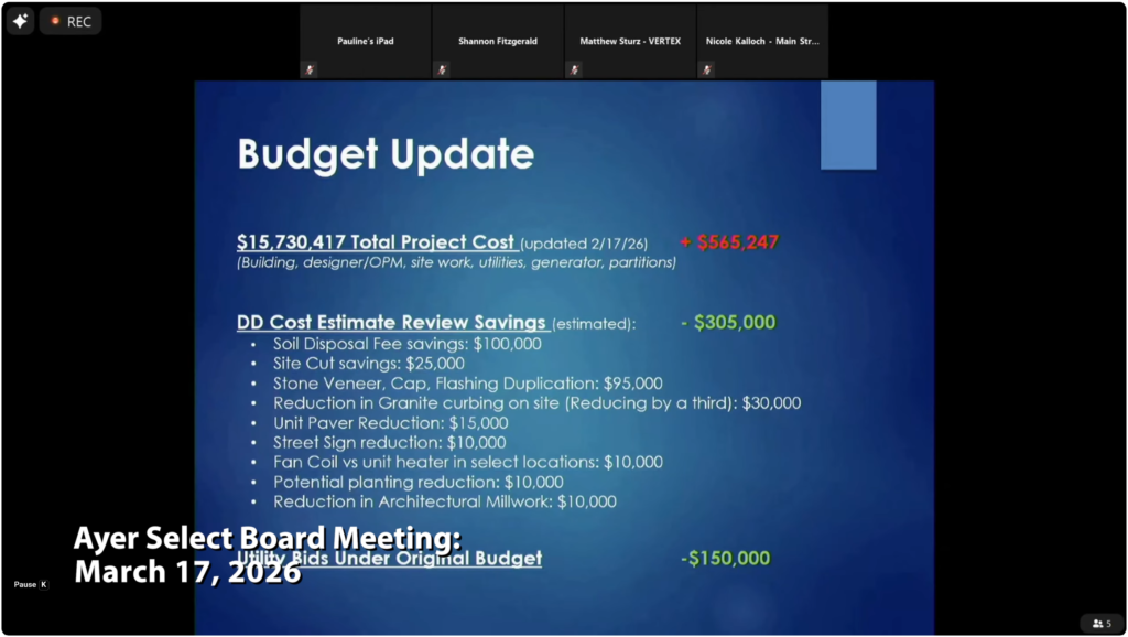 Presentation on the new Senior Center project from Ayer Select Board meeting on March 17, 2026. See bottom of this page for meeting video link.